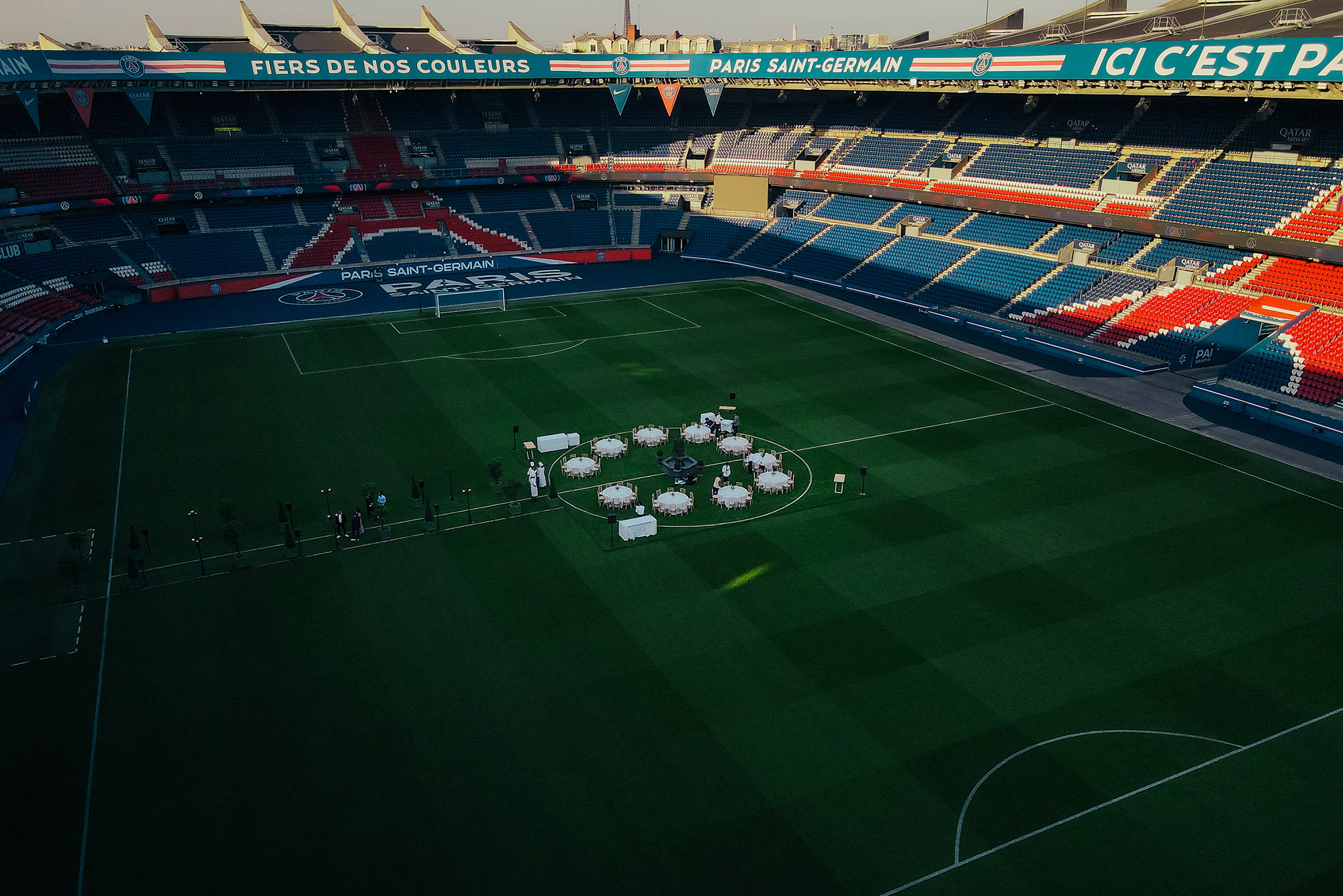 Dîner sur la pelouse du stade